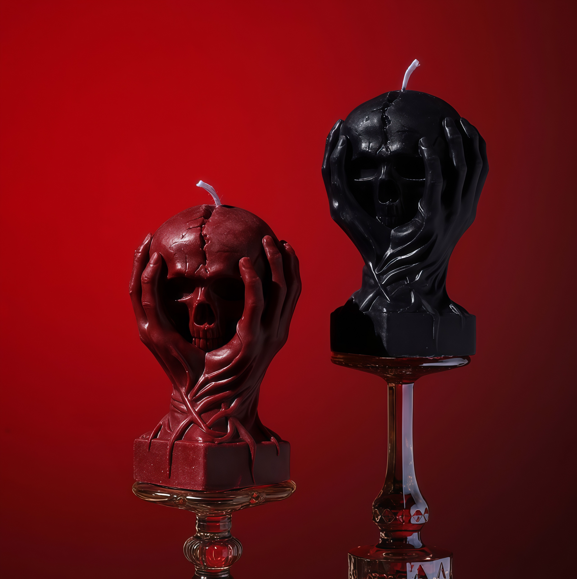Emberbound is a uniquely designed low-temperature candle, blending gothic artistry with functional elegance. Featuring a skull encased in sculpted, gripping hands, it adds a bold, dramatic touch to any space. Ideal for themed interiors, events, or collectors of dark decor. Safe to burn, striking to display—where form meets flame.